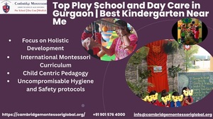 The only Pre school and day care which provides Montessori style of teaching to the younger ones. Successfully opened multiple branches in Gurgaon, Cambridge Montessori pre school is offering the best practical learning, life based skills to the kids along with traditional methods. Its child centric pedagogy, hands on lessons, emphasis on holistic development make it the best pre school in Gurgaon.